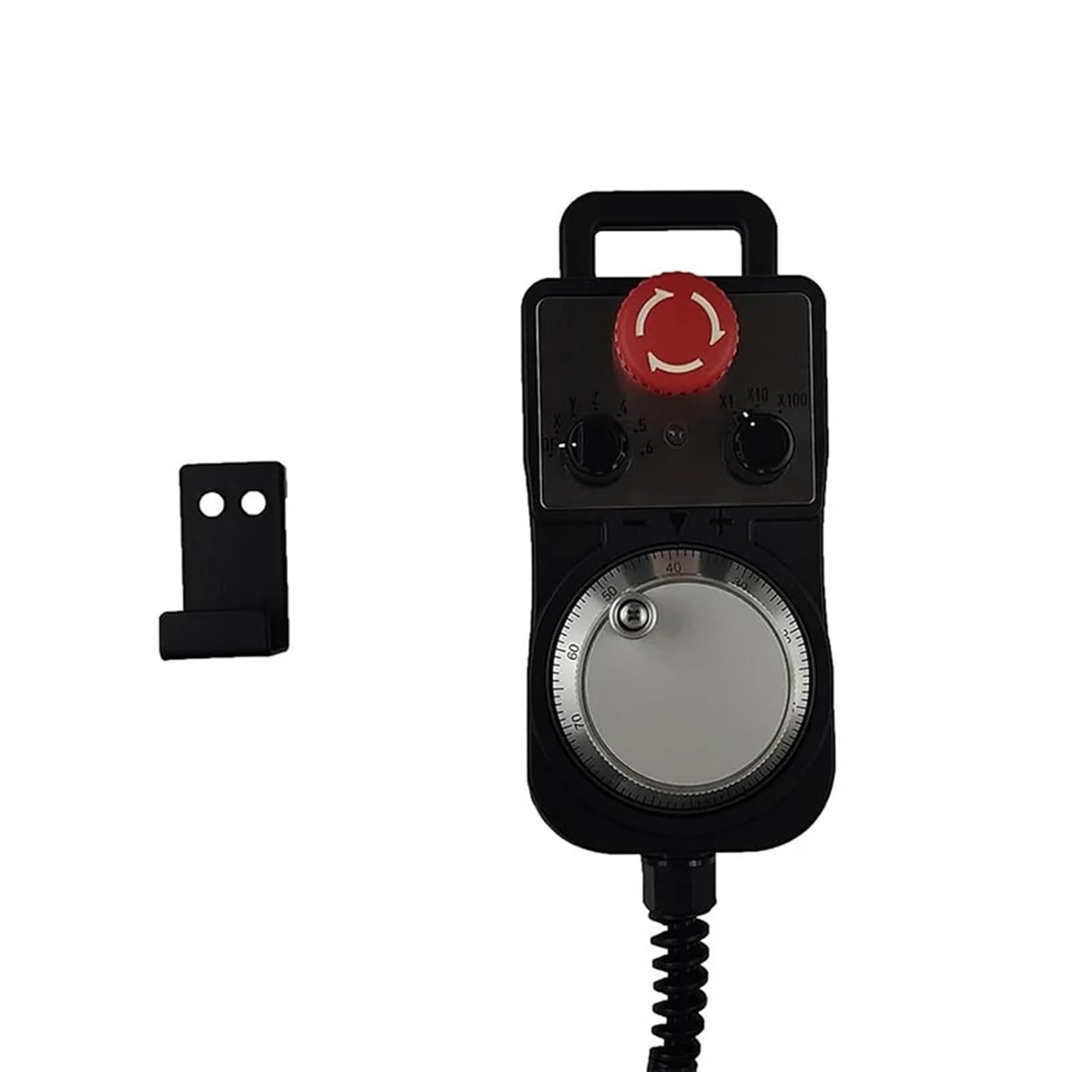Pulse GeneratorsProduct Package1 x MPG handwheel(Optional)Description:1.The 4-6Axis handheld controller MPG Pendant with x1, x10, x100 selectable, You are bidding one complete unit of the MPG pendant with Emergency stop for 4 axis machine, it equipped with our popular machined MPG unit with 4-6 axis and scale selector, LED indicator also send feedback from the machine to user about the status of the unit.2.All Wiring isolated from MPG unit and provide a easy to install wiring diagram, it suit both commercial machine as a replacement jog control unit or other computer based controller. Which add great control flexibility to the system.Specification:1. x1, x10, x100 switch2. Axis selector switch3. LED indicator4. With Emergency stop5. professional chassis6. 6ft extendable shielded cable cord7. Magnetic base holder can place anywhere on the machine steel surface8. Required 5V+, 150mA, power for MPG9. Phase output is A ,/A and B,/B;10. TTL output, drive capability +-20mA;