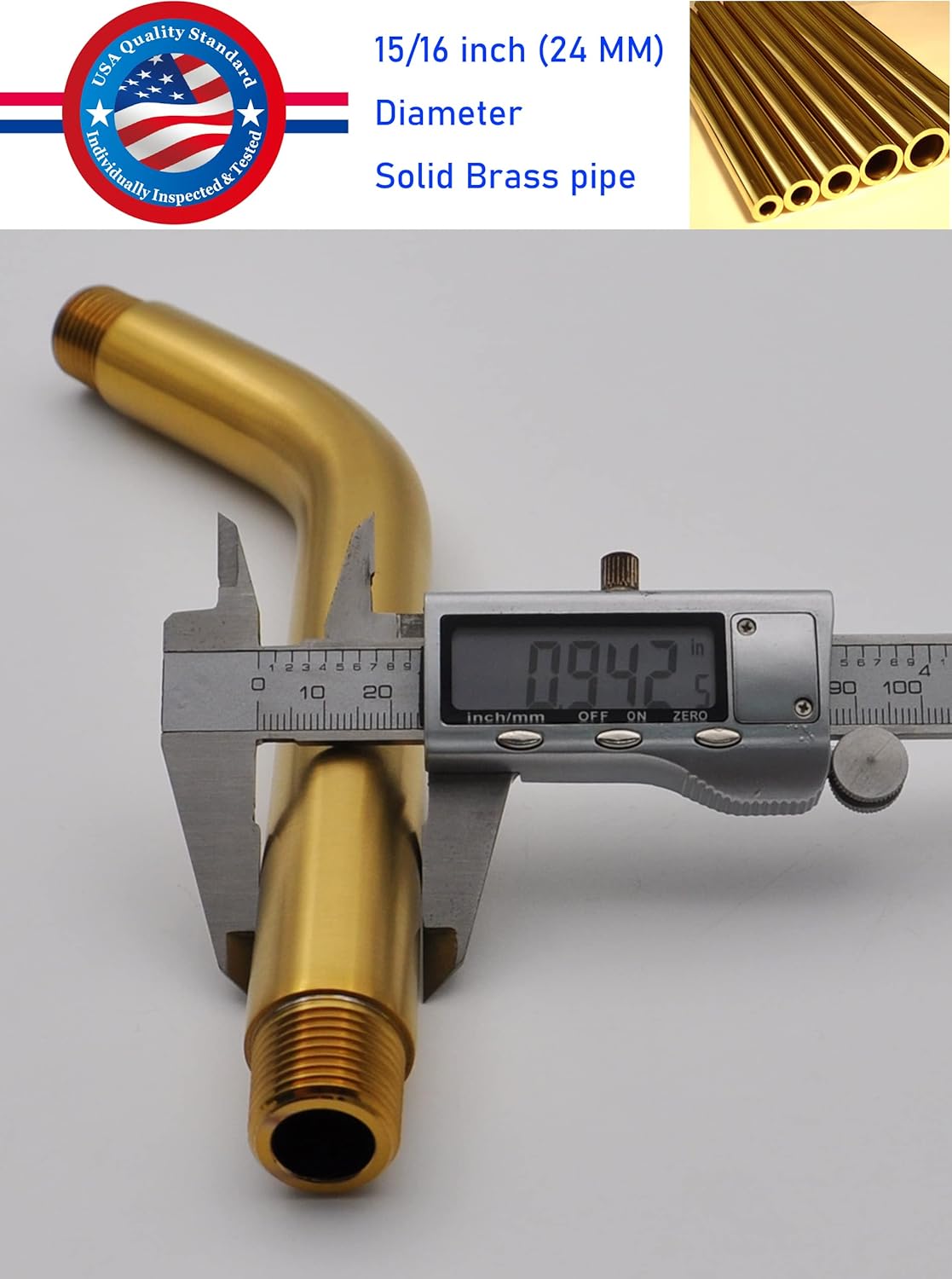 Aquaiaw Shower Arms Bundle, 6 inch Wall Mount and 8 inch Ceiling Mount Shower Arms, Both by Solid Brass, Both Round, Both Brushed Gold, Both with Anti-Scratch Flange, Soldered 1/2 NPT Tapered Threads