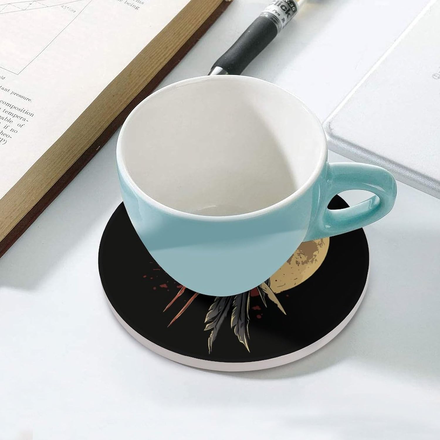 coasters,coasters set of 4,coasters set of 6,cute coasters with Funny Pattern Printed Ceramic Coasters with Cork Base Cup Holder Absorbent for Drinks Coasters Round Tabletop Protection Mat Decorative Cute Coffee Cup Beverage Coasters
