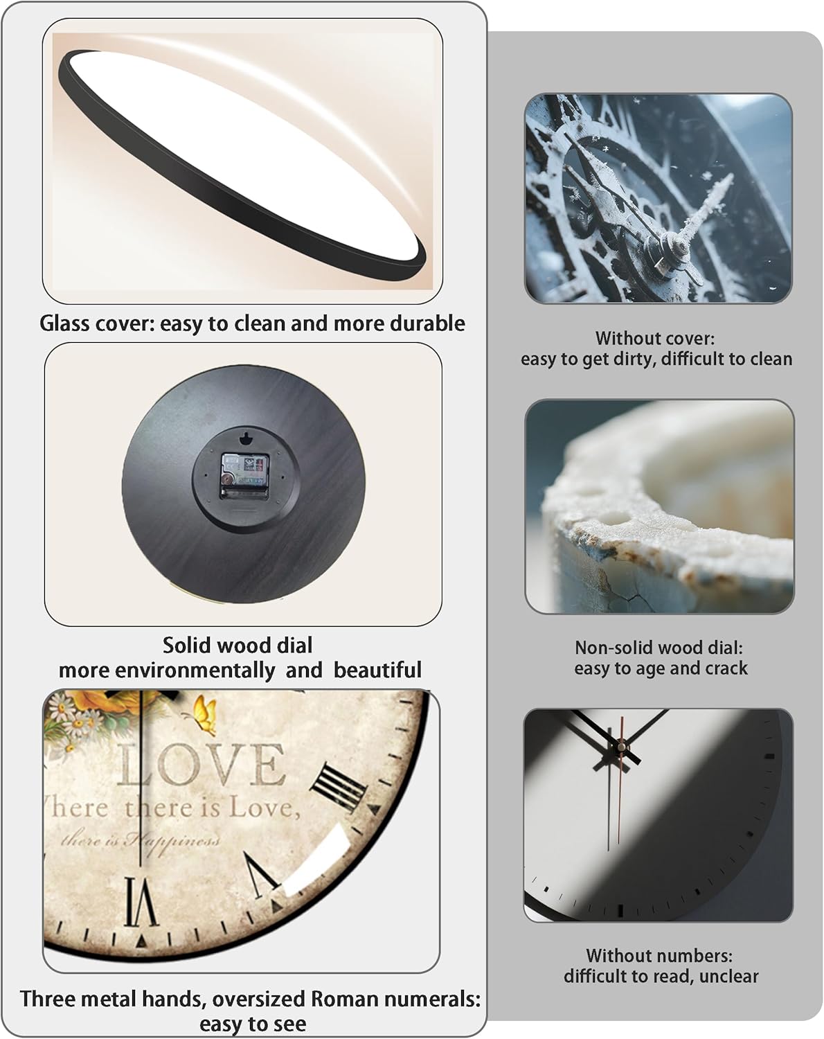 | Additional Features | Dial cover, Silent Clock, Wooden dial |