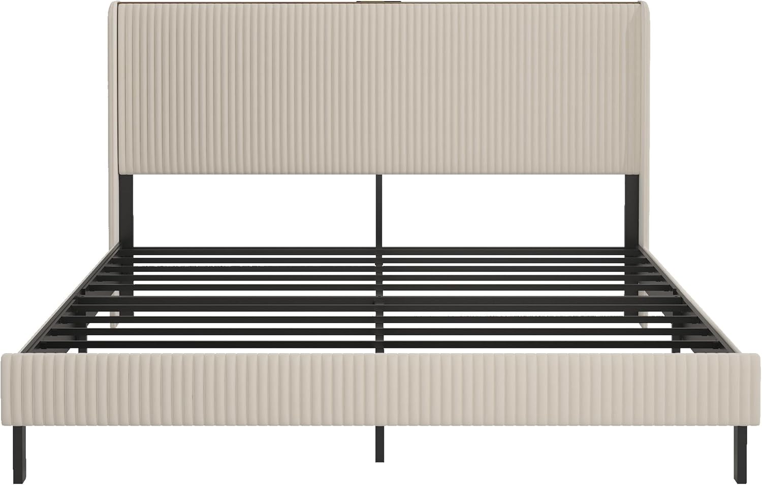 | Item Type Name | King Platform Bed with Stylish Headboard & Usb Port Design,Easy Assembly & Noise Free & No Box Spring Needed, Beige |