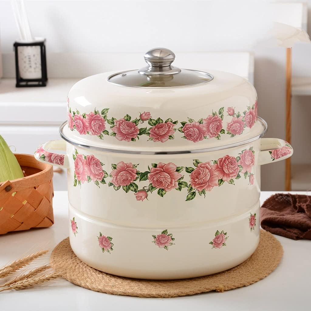 Material: Enamel.Diameter: 34cm.Pot bottom type: composite multi-layer bottom.The high-arching lid makes it difficult for the upper steamed stuff to reach the lid.The lower layer can be used as a large soup pot without steamed slices, and the lower layer is steamed with steamed slices.1 x Stainless Steel Steamer notes:1. Due to the difference between different monitors, the picture may not reflect the actual color of the item. We that the is the same as the shown in the picture.2. Due to different personal measurement techniques, there may be physical errors in 1-3mm. Thank you!
