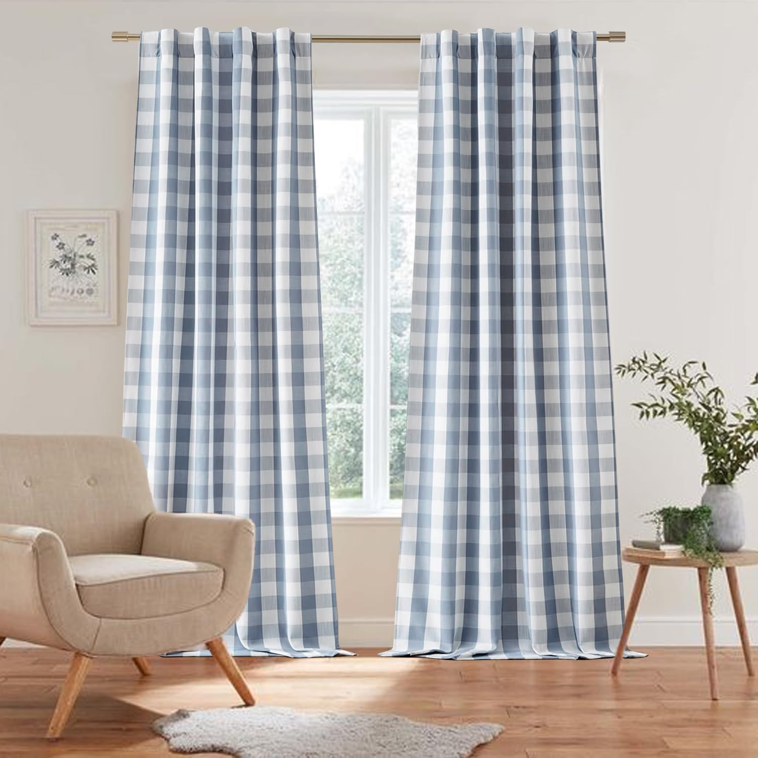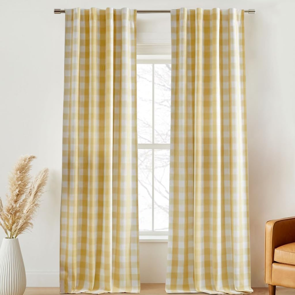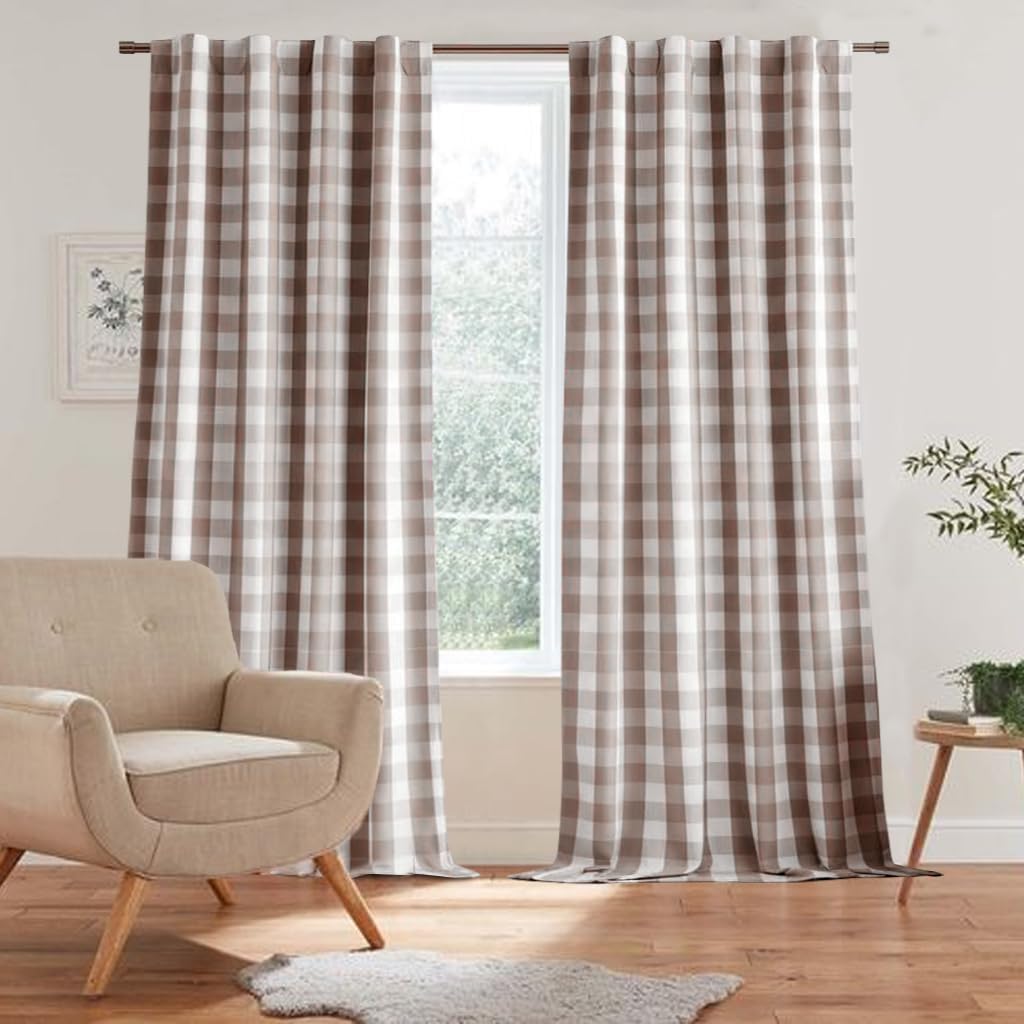 ENJOYBRIDAL Green Plaid 84 Inch Curtains for Living Room Gingham Cute Drapes Rod Pocket Semi Sheer Boho Rustic Window Curtain Panels Bedroom Tassel 2 Panels Farmhouse Window Treatments