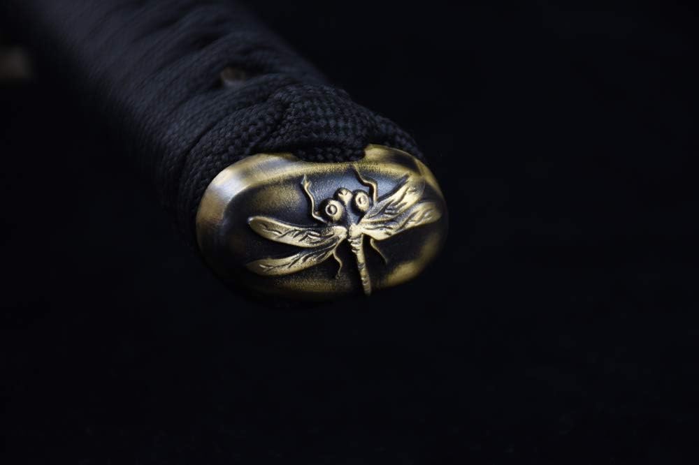 Full Handmade Katana Japanese Samurai Sword Hard Wood Saya with brass Sharp Blade HRC 60 Can Cut Bamboo Damascus Folded Steel Blade, pure Brass fitting it's good choice for training or collection in samurai swords.