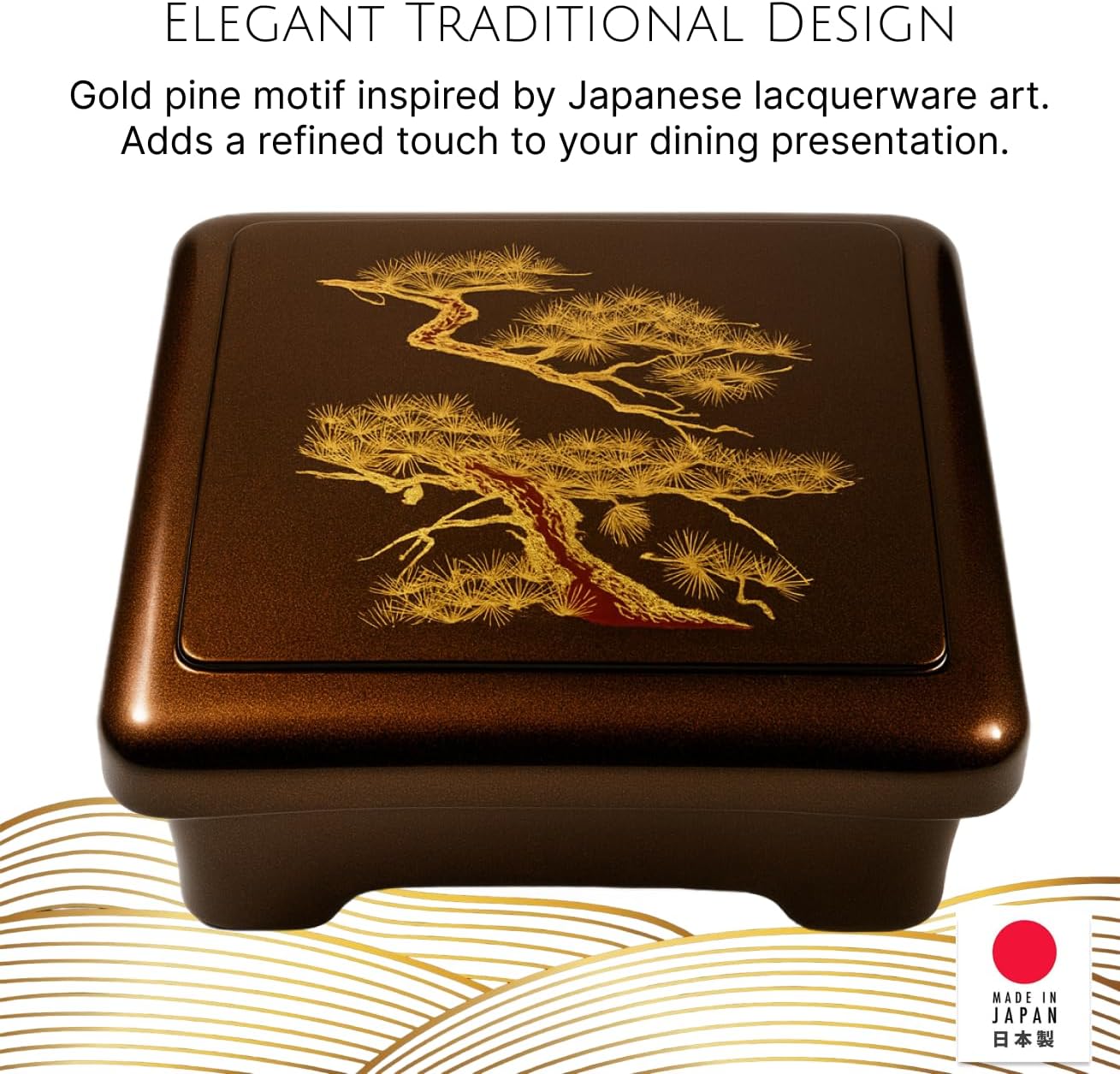 Experience the beauty of traditional Japanese dining with this Set of 4 Lacquered Bento Donburi Boxes, exquisitely crafted in Japan. Each box features a striking gold lacquer exterior with an elegant pine pattern, complemented by a red inner layer for authentic presentation. Perfect for Unadon (grilled eel rice bowl), poke bowls, sushi, sashimi, katsudon, oyakodon, or lunch bentos, these boxes combine timeless design with everyday functionality. Each box measures 6-3/4" x 5-3/4" x 3" and holds 1200 mL, offering generous space for a fulfilling meal. Made in Japan with BPA-free plastic and urethane lacquer, they are safe, practical, and dishwasher safe for easy cleaning (not microwave safe). This set of 4 delivers elegance, durability, and authentic Japanese craftsmanship, making them an essential addition for both casual meals and special occasions.