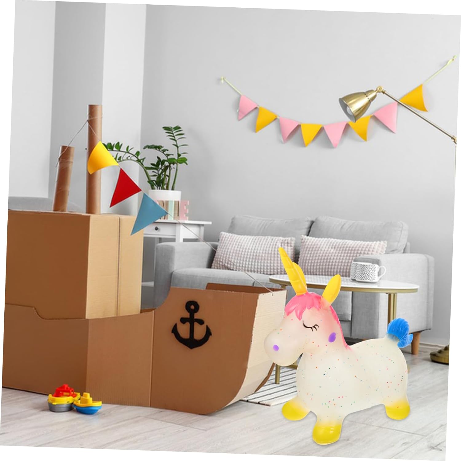 Package List 1 x inflatable jumping horse Features -Material:Plastic inflatable -Fun experience: adds an element of fun to playtime, encouraging to engage in active play and enjoy themselves walking horse -Color:Multi bouncy animal -Cute unicorn design: the charming unicorn shape is visually appealing and attracts attention, making playtime more enjoyable riding horse -Balance development: helps their balance and coordination by providing a stable riding experience horse -Multiuse: ideal for use in kindergartens, homes, and other settings, providing a versatile play option for simulation horse -Size:60.00X50.00X35.00cm/23.58X19.65X13.76in hopping -Enhanced safety: the large and thick design offers safety, allowing to play without the risk of injury rocking Goods Informationbouncy animal The inflatable design allows for and portability.simulation horse can enjoy hours of hopping and bouncing, which promotes physical activity and strengthens their muscles in a fun and engaging way.inflatable animals The bouncing horse is an ideal companion for young . bouncy animal Its sturdy construction and comfortable seating make it for indoor and