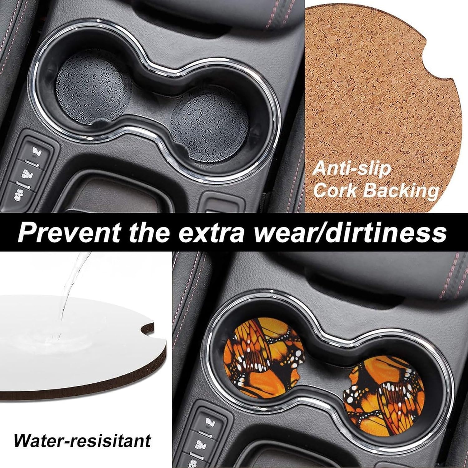 car coasters,coasters set of 6,coasters set of 4,car cup coasters,cup holder coasters for car Round Wood Car Cup Holder Coaster 2.56 Inches Cute Absorbent for Drinks Coaster Auto Interior Decorative Accessories with Funny Pattern Design