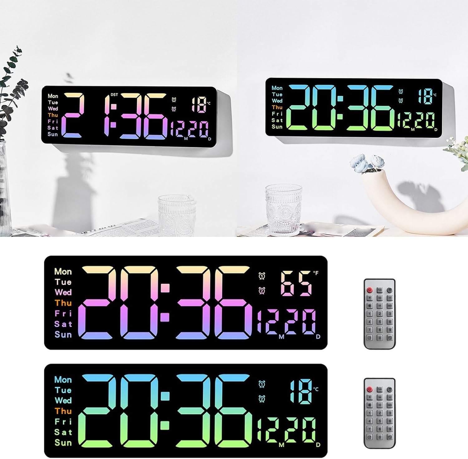Multifunctional LED Clock with Temperature and Humidity Date and Week Display Modern Digital Clock Wall HangableFeatures:Multifunctional setting: multiple functional setting, such as alarms, Large screen display: Adopting large screen, the digital display is clear and bright, providing a good visual Temperature and humidity display: In addition to time function, it can also display indoor temperature and humidity for user understand the indoor Mordern design: the appearance is and elegant, suitable for various interior decorations.Brightness function: brightness and user can adjust the brightness screen according to their need to adapt to lighting.Specifications:ABS Size about 38X2.2X13CM/14.96x0.87x5.12inColor: Green As PicturesPackage Includes:1PC Digital Alarm ClockNote:Due to the problemsof lighting effect and there mightbe certain tolerances in product, please understand.Please allow 0-1cm error due to the measurment.