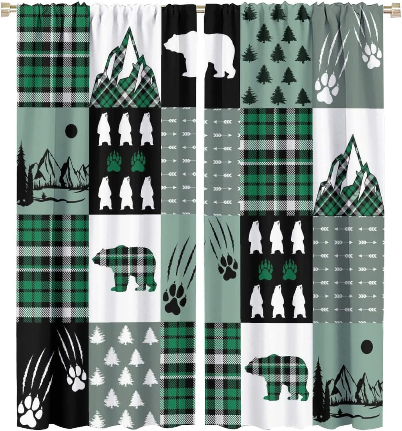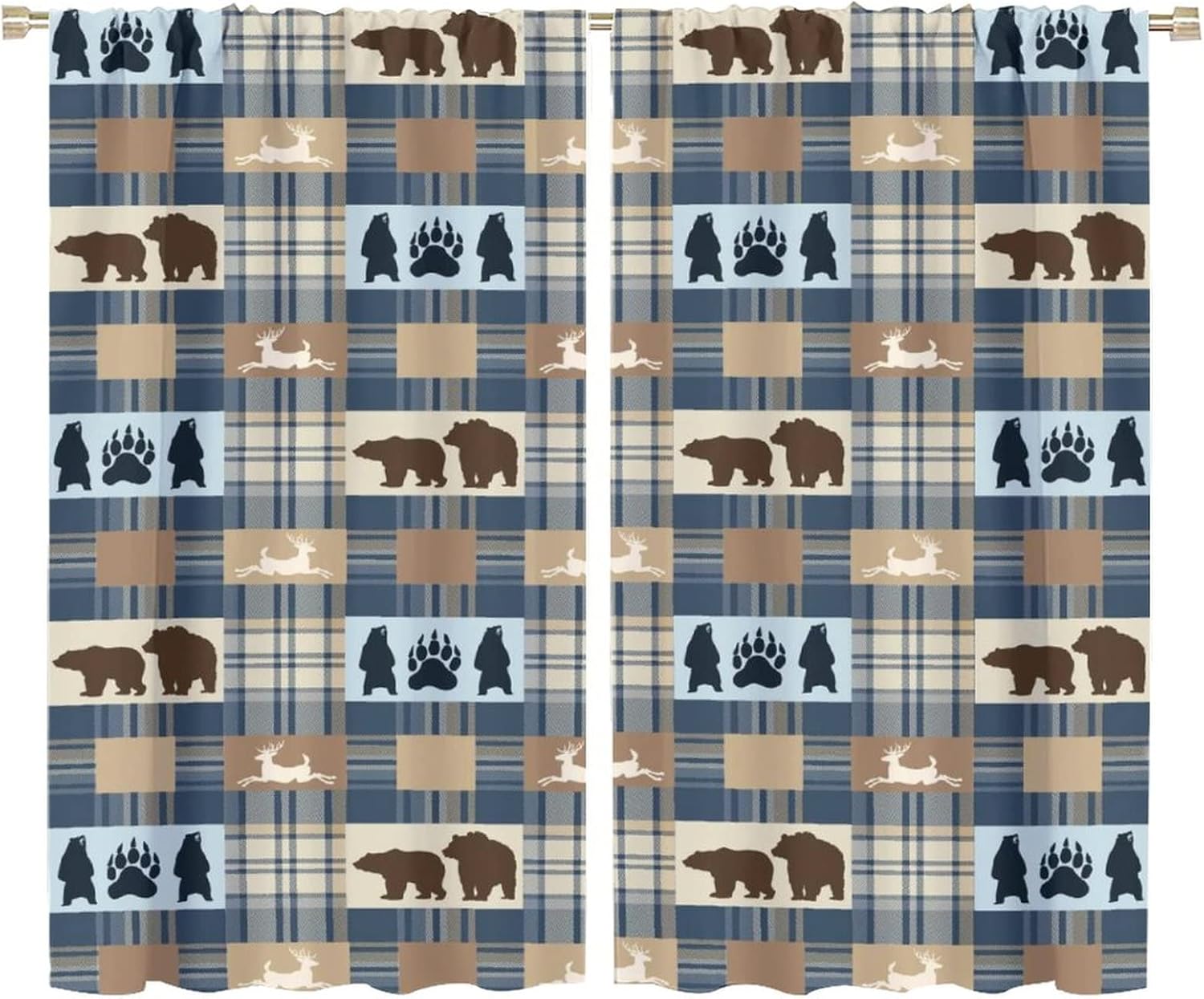 This Rustic Plaid Bear Curtains can block out 85%-99% sunlight and UV ray ( Darker colors work better), perfect for late sleepers and afternoon naps. Our energy saving curtains insulate against summer heat and winter chill to balance your room temperature, reduce outside noise .This Rustic Plaid Bear Curtains liven up your indoor or outdoor spaces with a sense of airiness and beauty.These Rustic Plaid Bear Curtains are suitable for the bedroom, living room, dining room, infant room, kids room, office or other public place.Material:Polyester high quality fabric curtains, warm and interesting, beautifully designed.Kindly Remind:- Don't use sharp things scratching curtains.- For proper fullness panels should slightly larger than the window size the width of your window.- 24 Hours customer support.- As different computers display colors differently, the color of the actual item may vary slightly from the above images.