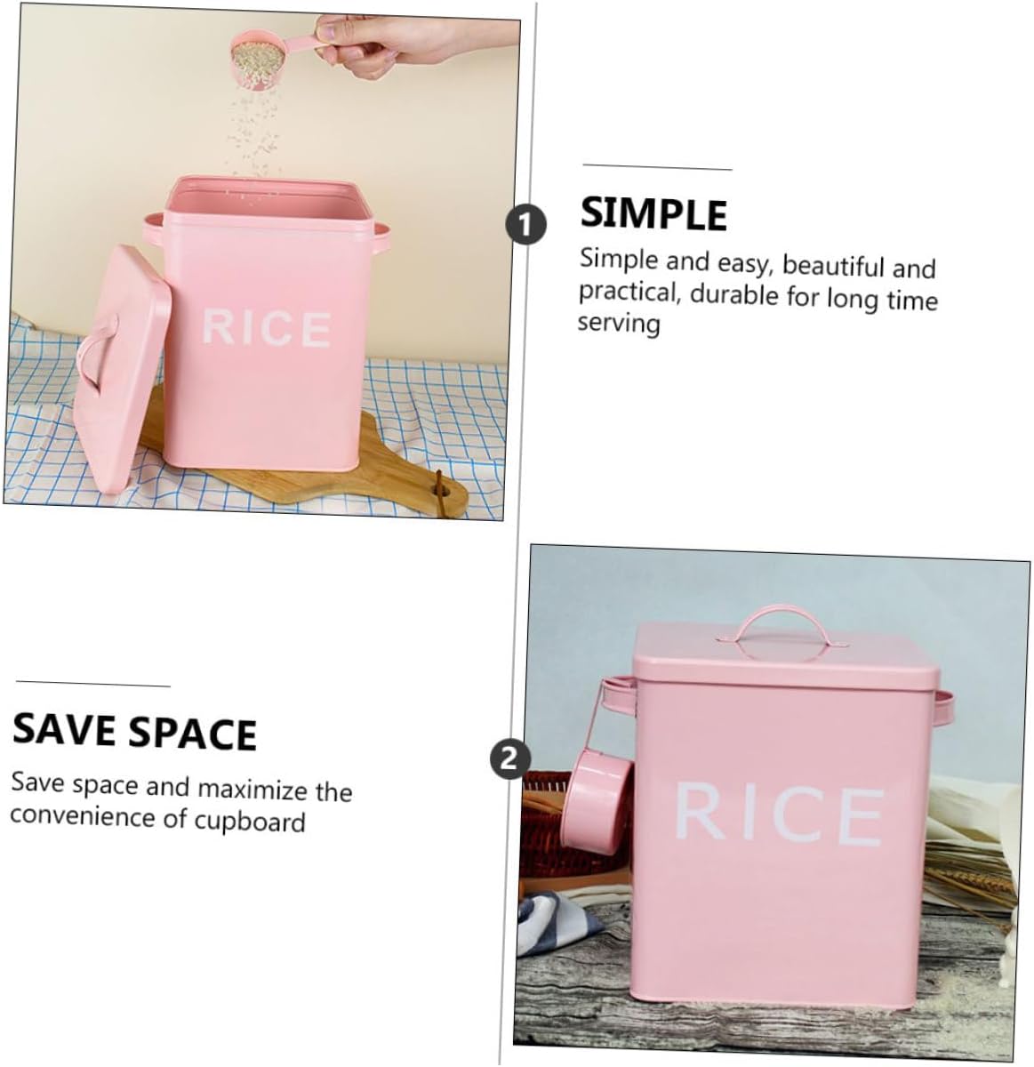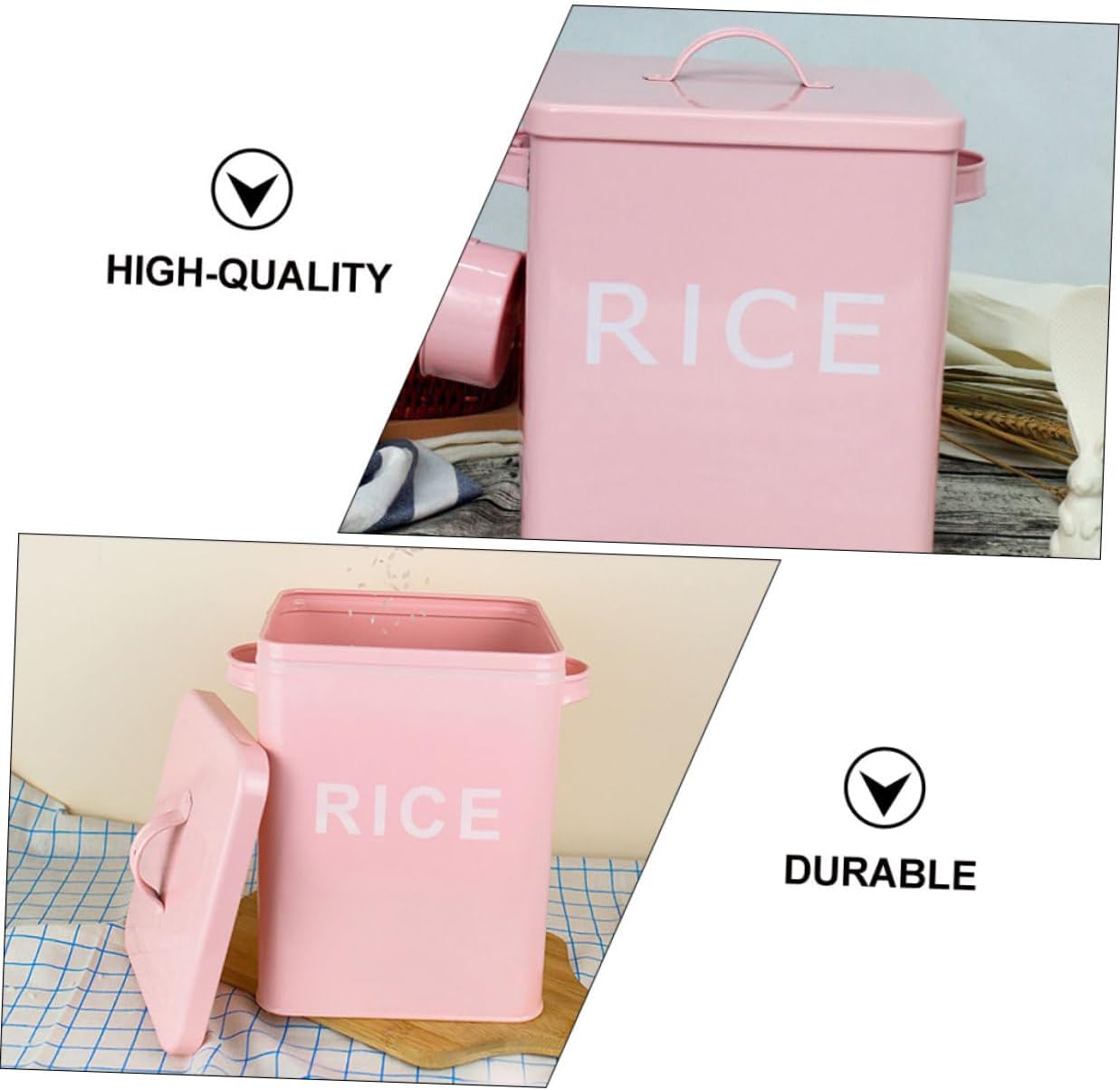 Package List 1 x Storage Bucket Features -Material: Iron -Size: 23.00X18.50X15.50cm/9.04X7.27X6.09inch -Product Info:Grain storage barrel -Color: Pink -The performance of sealing is good, you need not worry about the pet food quality after you putting them for a long time metal dog food storage container. -It is not only a pet food container, but also a creative decor in your home pet food bucket. -With lid style opening design, convenient and easy to store food storage container. -One bucket is multi-purpose, moisture- and - , strong and reliable container for dog food. -The selected material is solid and , durable construction, safe and healthy.Goods Informationsmall dog food container It is a household rice bucket, and moisture- kitchen storage container, rice bucket, suitable for storing rice flour and grain at home.animal food container Durable and reliable plastic material for long time use, not easy to damage, durable.sealed dog food container Fine workmanship, simple and beautiful, it and keeps fresh and moisture