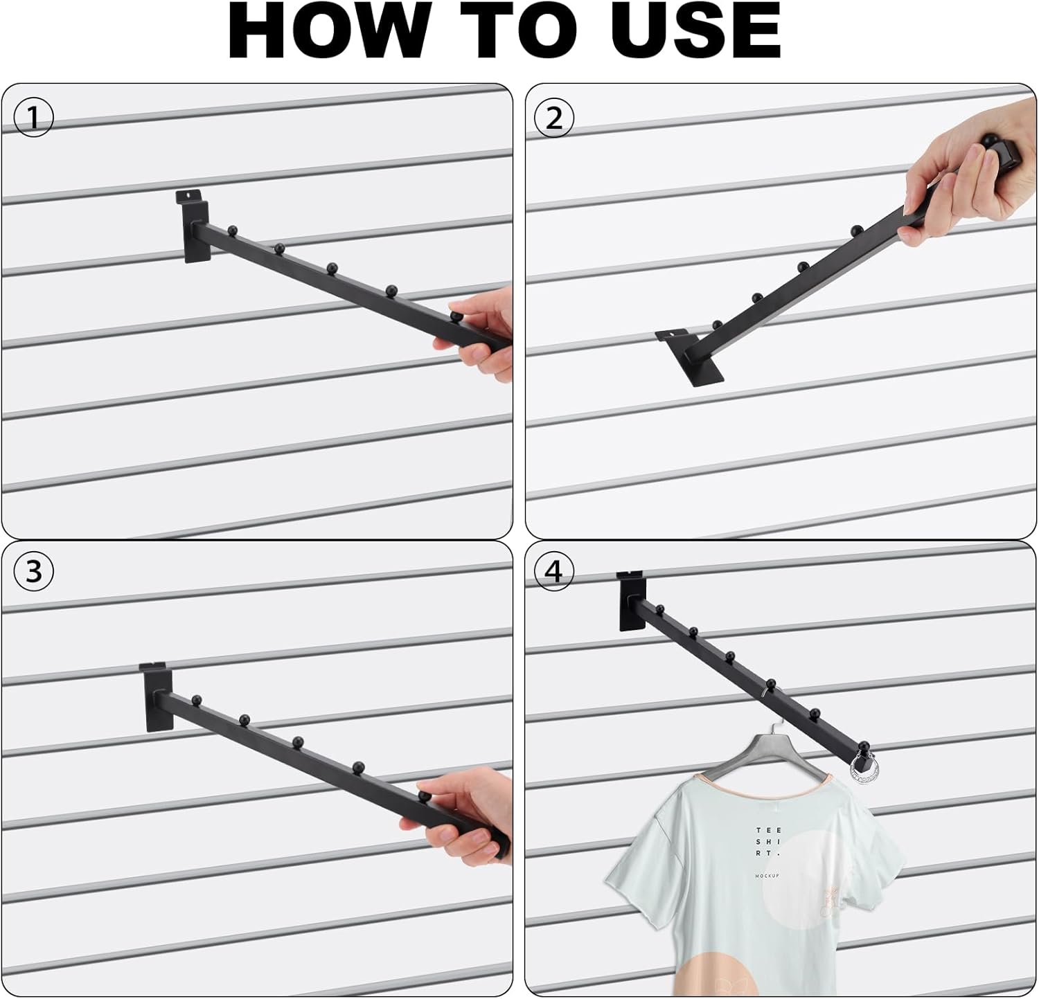 This hook will help you organize easily and use your space wisely, suitable for clothing stores, retail stores and home settings.This slatwall hook is 15.75 inch long,made of high-quality metal with a smooth surface It is not prone to bending or breaking, Suitable for most of the slat wall.Package Includes10 x slatwall waterfall hooks
