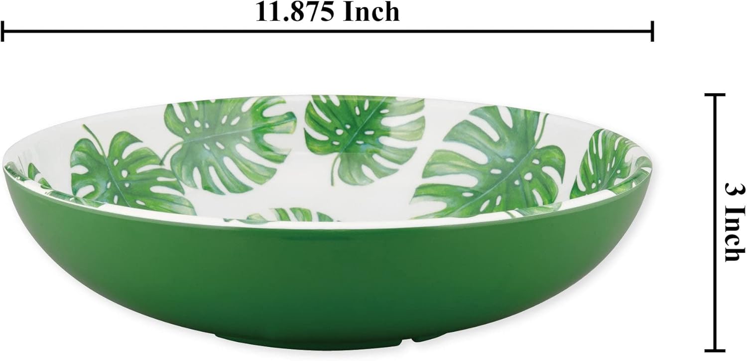 Bring the beauty of the tropics to your table with the Monstera Leaf Melamine Serving Bowl. Featuring a vibrant all-over green monstera leaf print, this bowl adds a splash of summer to any gathering. Its generous 11.875-inch diameter and 3-inch height make it perfect for serving large portions of fruit, salad, pasta, or snacks. Crafted from BPA-free melamine, this bowl is both durable and lightweight—ideal for outdoor use, picnics, or festive dining indoors. Add it to your tropical collection for a fun and functional centerpiece that’s easy to clean and hard to miss.