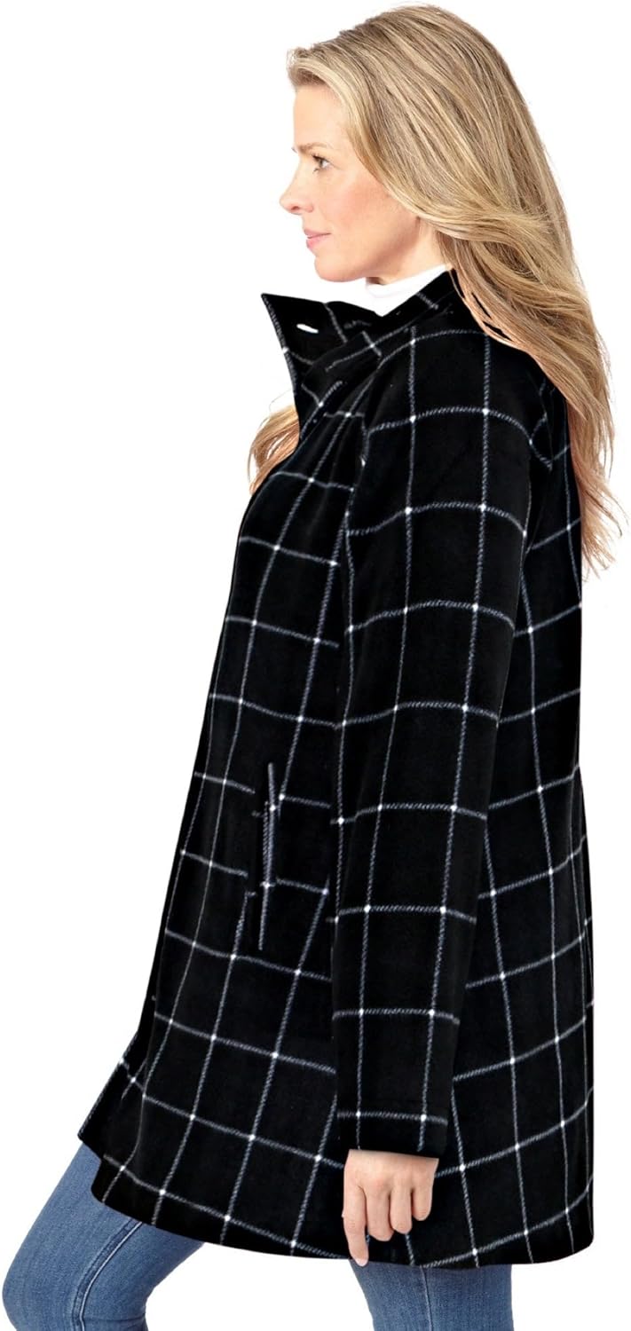This A-line shaped swing jacket made in super cozy fleece is feminine and soft. A button down front with stand collar keeps out the elements on chilly days while side pockets keep your hands warm. Wear this over everything for a stylish layer. Fully lined br> Average: 34" length. br> Petite: 32" length hits at the lower thigh br> Poly, imported br> Machine washable