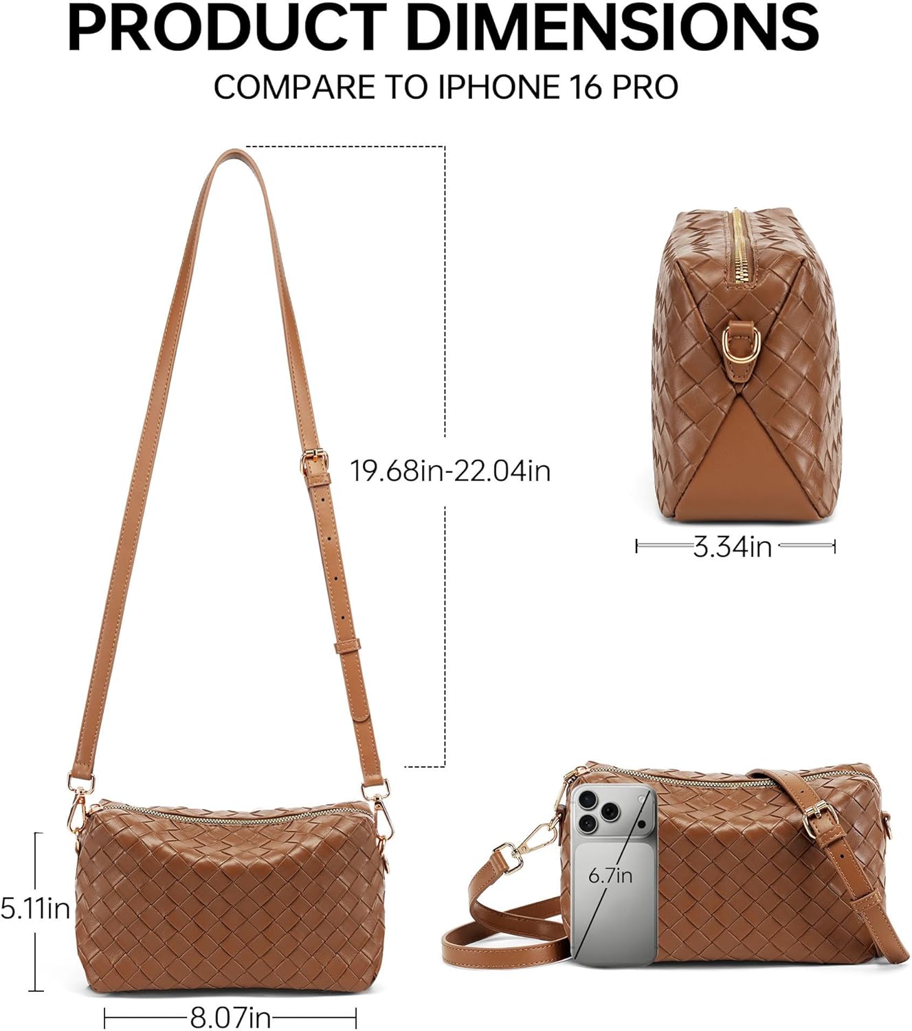 This designer-inspired accessory is crafted for the woman who values both style and substance, offering a seamless transition from a busy day of errands to a casual evening out. The standout feature is its beautiful diamond-patterned weave, meticulously crafted for a textured, high-end look that catches the eye. Accented with elegant gold-tone hardware, this bag adds a luxe, trendy accent to any outfit, be it a simple jeans-and-tee combo, a flowing summer dress, or your favorite athleisure wear.Beyond its good looks, it’s built for real life. Made from premium, soft vegan leather, it promises not just a sophisticated feel but also remarkable durability and easy maintenance. A quick wipe is all it needs to look pristine, making it a worry-free choice for everyday use. Don’t let the compact size fool you. Measuring 8.07"L x 3.54"W x 5.51"H and weighing a mere 0.55 lbs, it’s incredibly lightweight yet deceptively spacious. The interior is thoughtfully organized with a secure zippered pocket for your valuables and a handy slip pocket for your phone, allowing you to keep essentials like your wallet, keys, and lipstick neatly in place. For added longevity, four protective rivets guard the base against scuffs and wear.Versatility is at its core. The adjustable woven strap allows you to customize the perfect fit, effortlessly converting the bag from a hands-free crossbody for shopping and travel to a chic shoulder bag for work or a dinner date. This adaptability makes it your reliable partner for the office, weekend getaways, farmer's market visits, or a relaxed coffee meet-up.More than just a bag for yourself, the KISSSEA Woven Crossbody is a wonderfully thoughtful gift. Its practical yet undeniably trendy design makes it a perfect present to celebrate a birthday, anniversary, Christmas, or Mother’s Day, sure to delight your wife, niece, daughter, or a best friend.